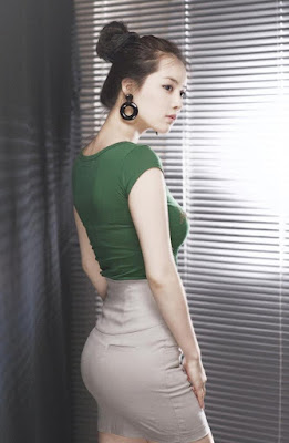 Here is the beautiful fashion photos of Popular Korean Cute Model Girl and Racing Queen Im Ji Hye with green T-shirt and short mini skirt. Im Ji Hye is also well-known for her big and attractive boobs.