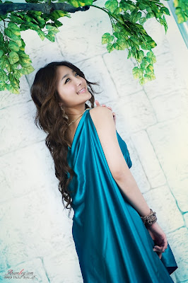 South Korean Model, Bang Eun Young 방은영 with Blue Fashion Dress